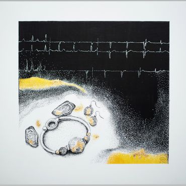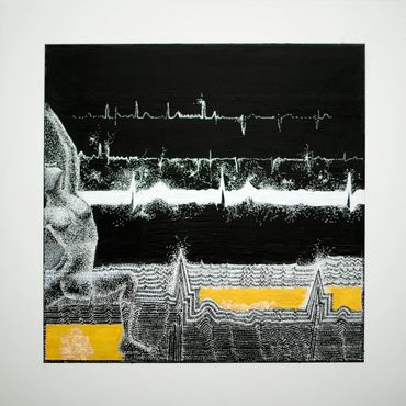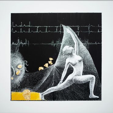 MEDIUM: Pen, Ink, Acrylic and Gold Pen on Board